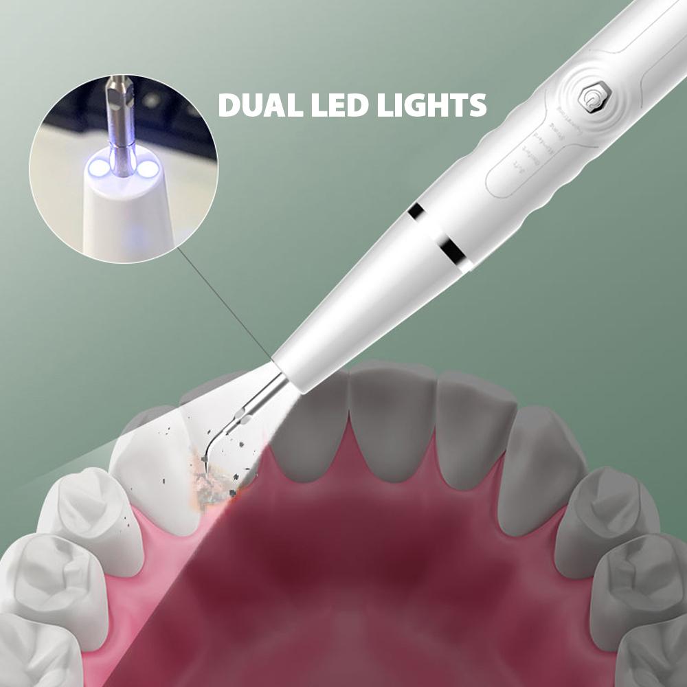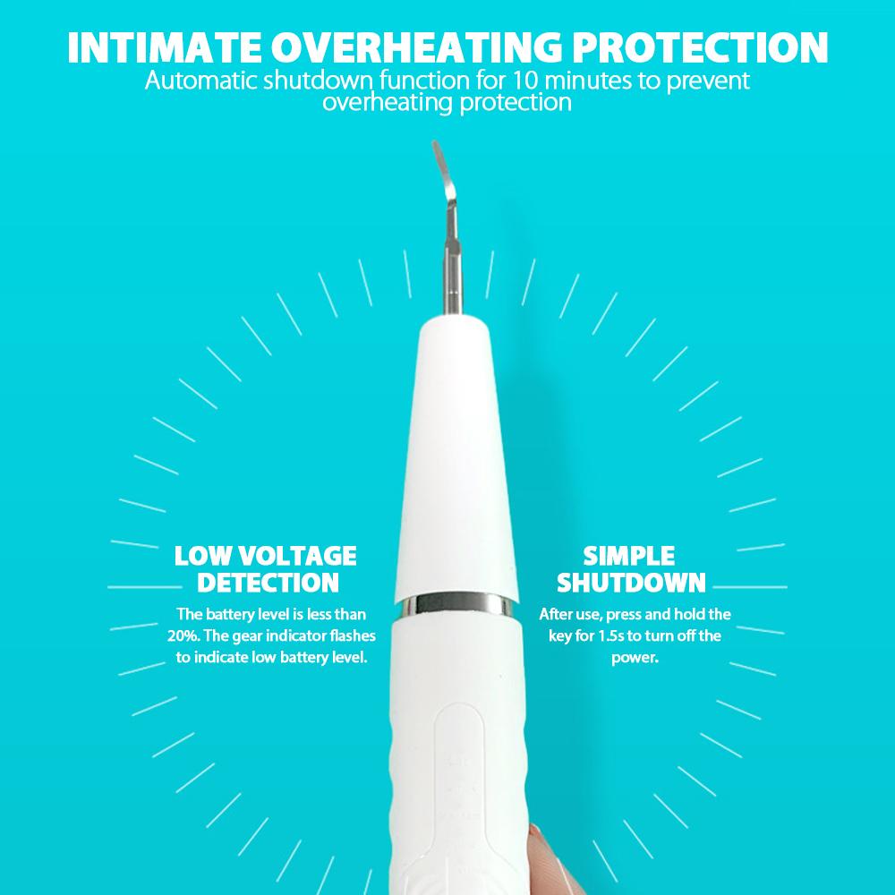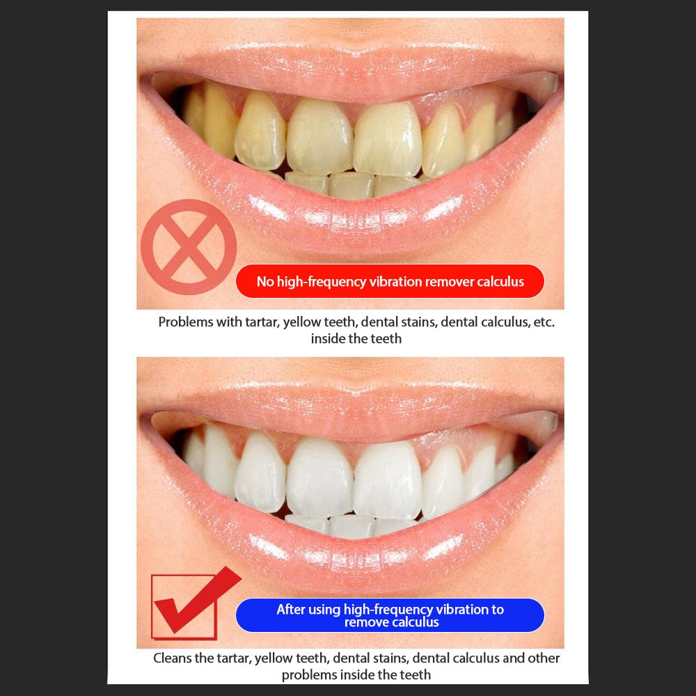 Dental calculus cleaner uses ultrasonic technology, high frequency vibration, effortlessly loosens and crushes all stubborn tartar, removes smoke stains, coffee stains and hard dental plaque.
