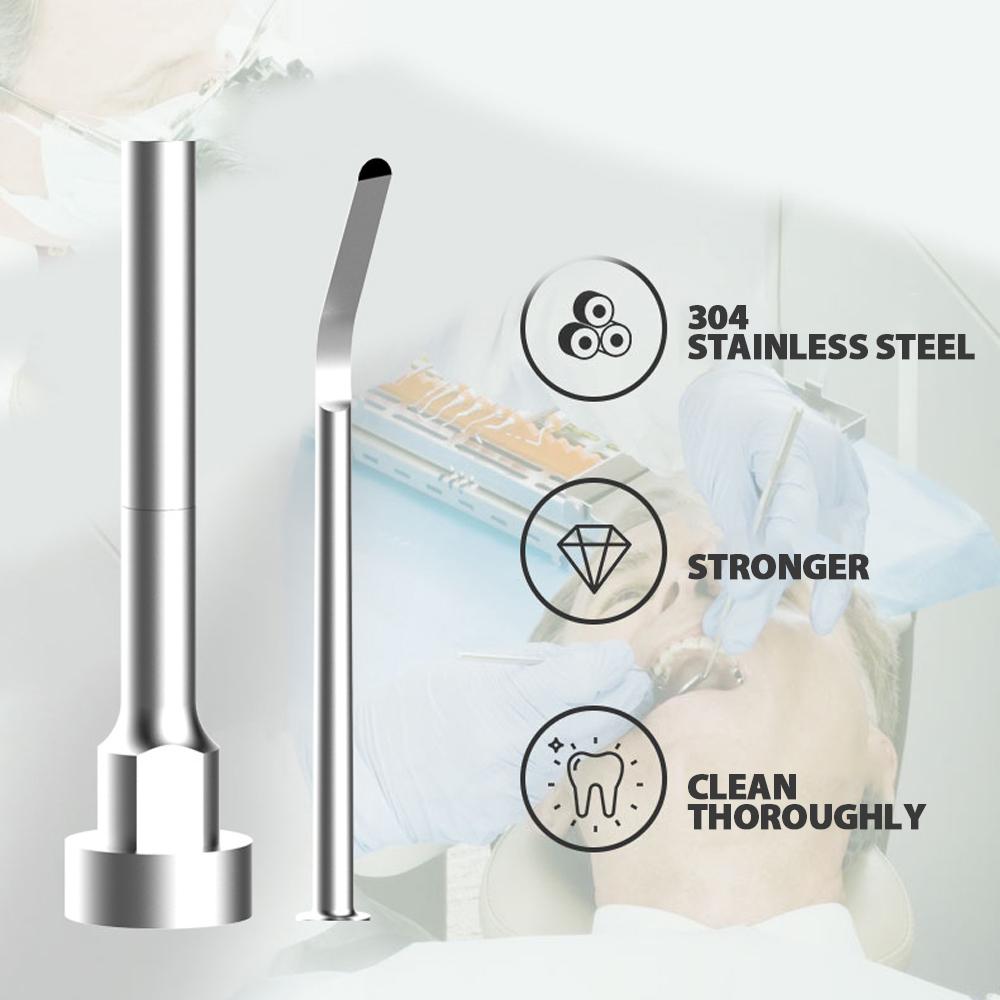 The tooth cleaner is equipped with 3 stainless steel replacement heads, which can clean the surfaces and gaps between the teeth. Built-in LED lights on dental mirrors and electric tooth cleaners help to concentrate stains.